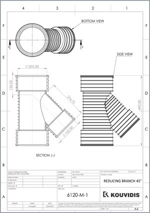 Ramificațiile la 45° sunt potrivite pentru o ramificare adecvată, atunci când este necesar, a rețelei în alte rețele cu aceleași dimensiuni. Sunt fabricate din polietilenă de înaltă densitate (HDPE) prin procesul de turnare prin injecție, care asigură structura necesară pentru o conexiune sigură cu conductele de canalizare sau de drenaj. Acestea sunt prevăzute cu capete mamă pentru a putea fi îmbinate cu capătul tată liber al conductelor GEOSAN PE fără a fi nevoie de mufe suplimentare.