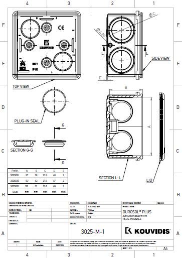 DUROSOL PLUS στεγανό κουτί διακλάδωσης με ίσιες τάπες – Τεχνικό Σχέδιο