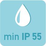 3Etanș la apă datorită plăcii de acoperire elastice și montate direct, oferind protecție împotriva factorilor externi IP 55