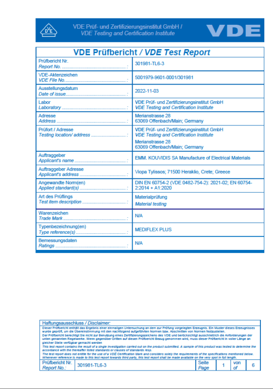 - STANDARD DE APLICARE:EN 61386.22, ΕΝ 50642, ΕΝ 60754-2, ΕΝ 61034-2